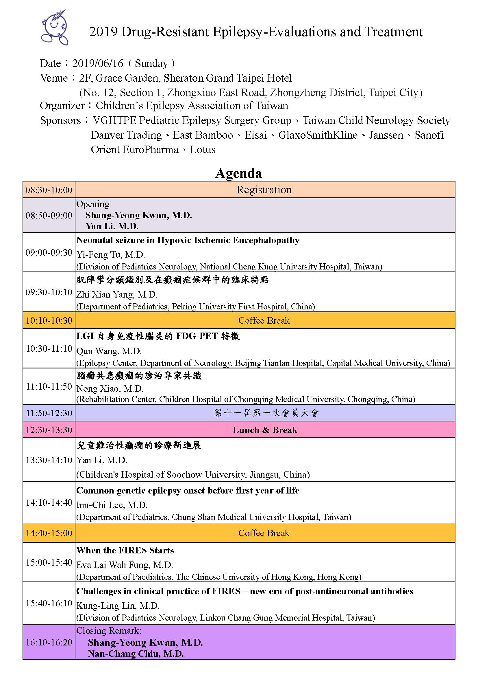 這次的會議主題為『2019 Drug-Resistant Epilepsy-Evaluations and Treatment』。