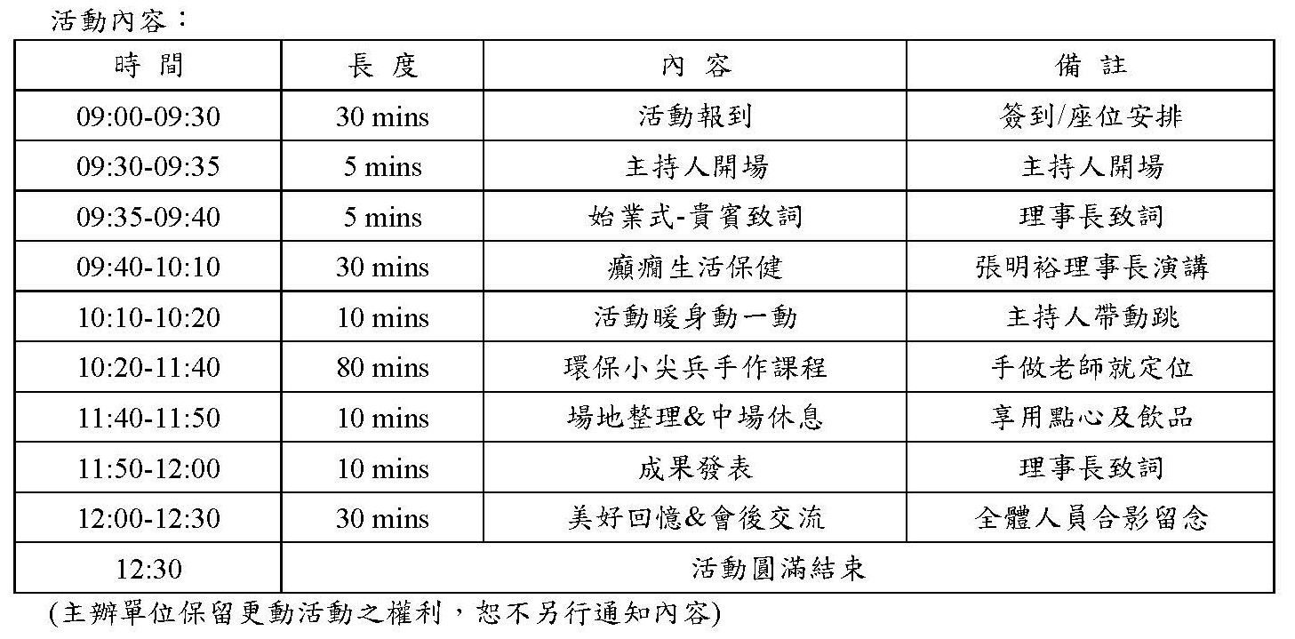 活動內容:(主辦單位保留更動活動之權利,恕不另行通知內容)