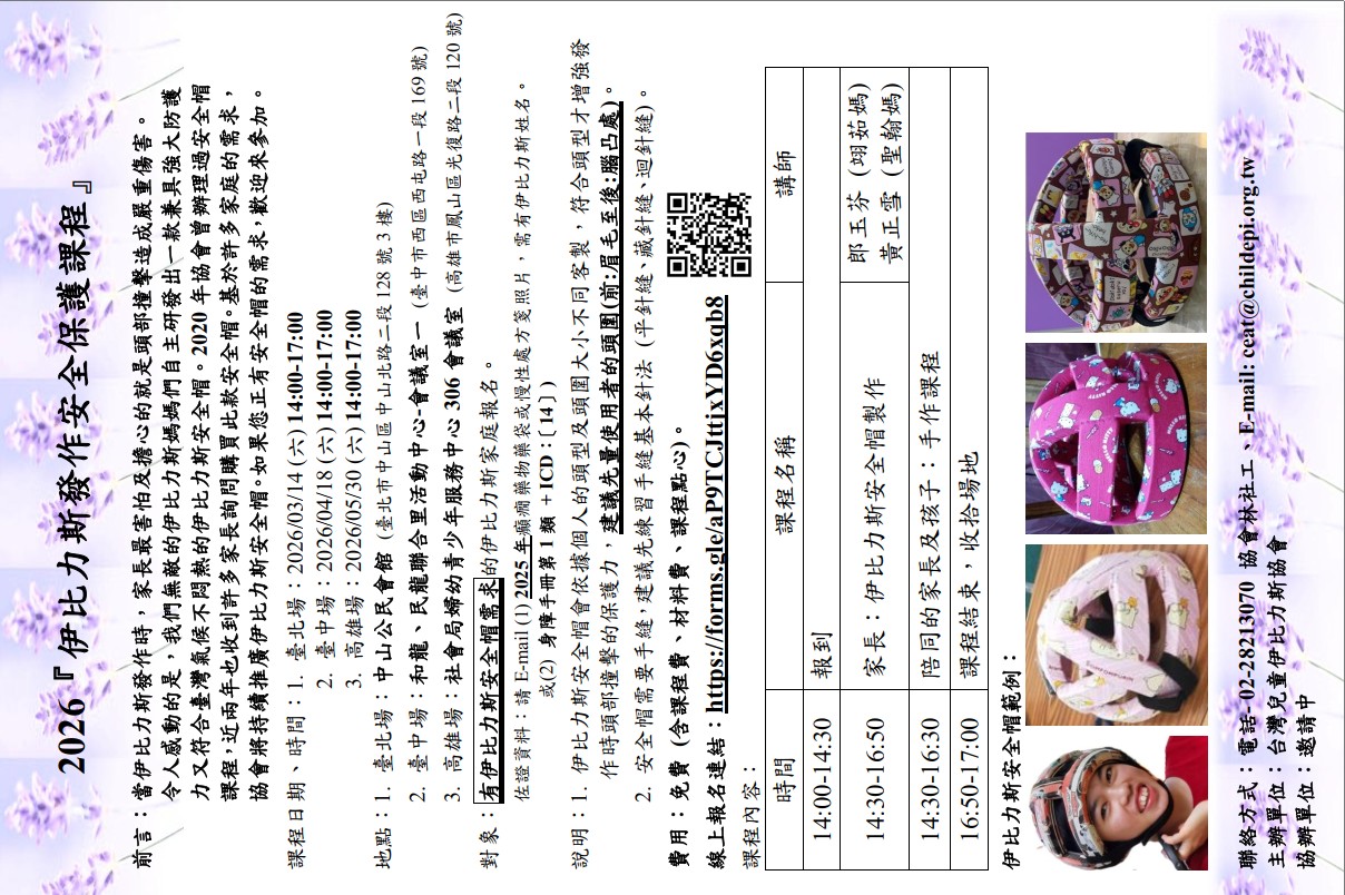 令人感動的是,我們無敵的伊比力斯媽媽們自主研發出一款兼具強大防護力又符合臺灣氣候不悶熱的伊比力斯安全帽。2020年協會曾辦理過安全帽課程,近兩年也收到許多家長詢問購買此款安全帽。基於許多家庭的需求,協會將持續推廣伊比力斯安全帽。如果您正有安全帽的需求,歡迎來參加。