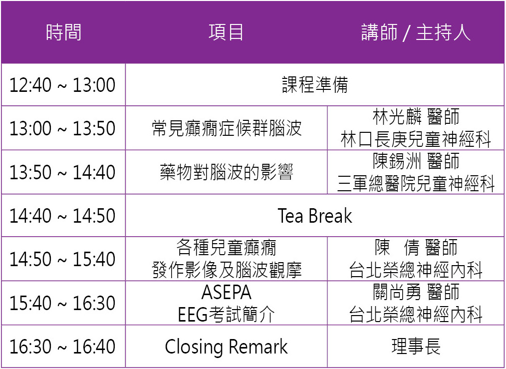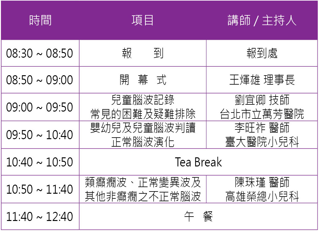診斷癲癇症最基礎、最重要的就是腦波判讀了,而兒童腦波的多樣性、獨特性需要多花時間來研究,這次課程希望能提供您完整的兒童腦波臨床經驗與判讀技巧,期盼能夠讓您滿載而歸。