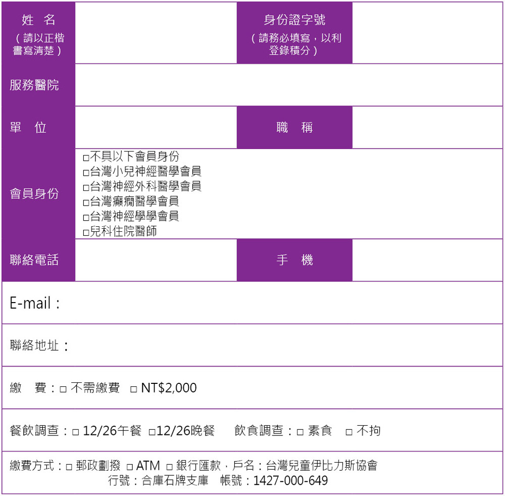 報名方式:敬請填妥『報名表』後並於12月10日前繳回台灣兒童伊比力斯協會,以利統籌作業。